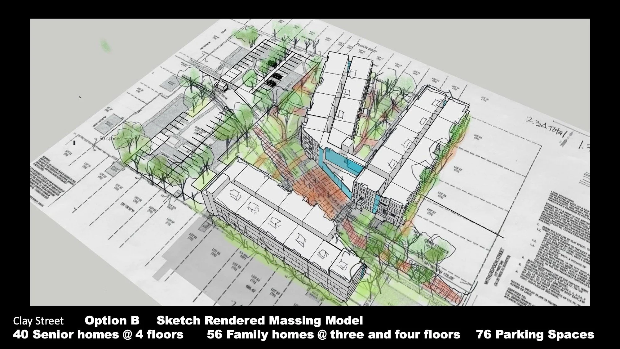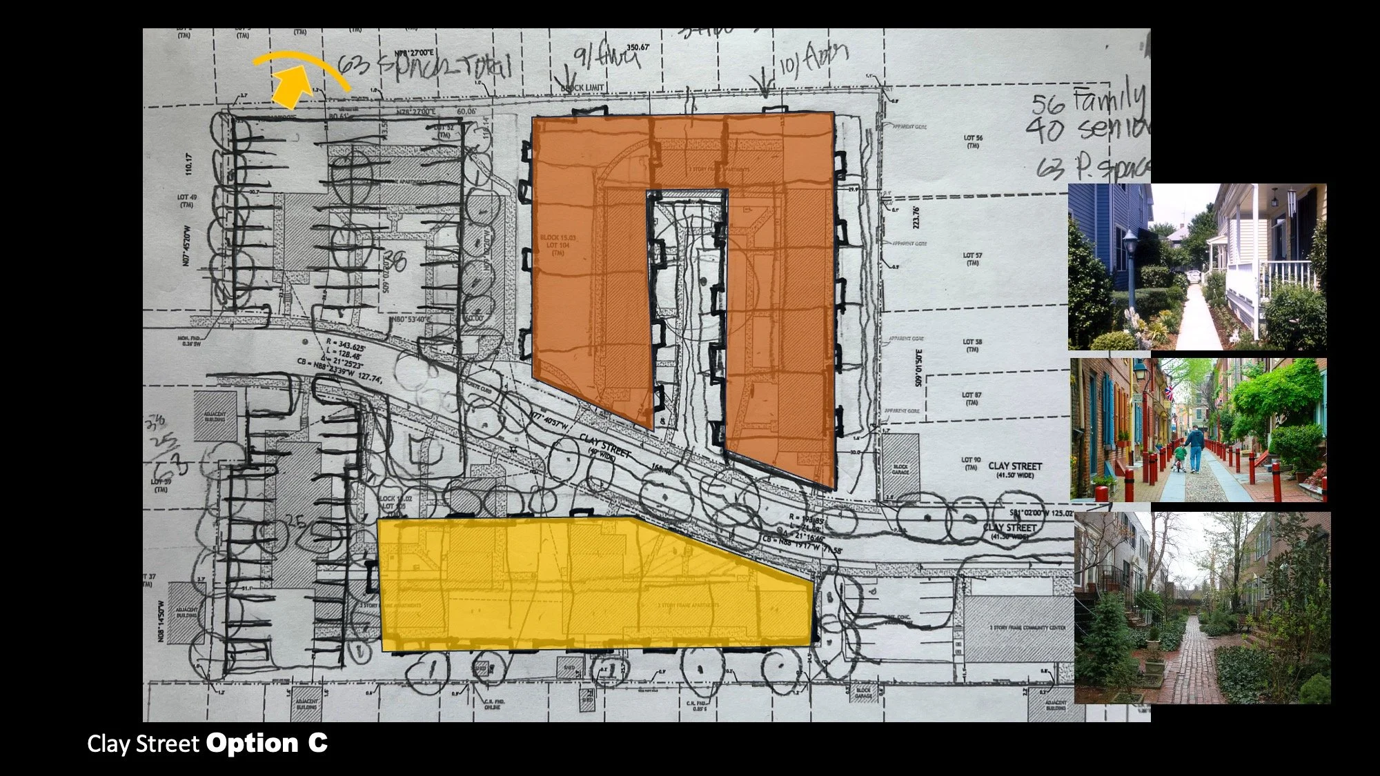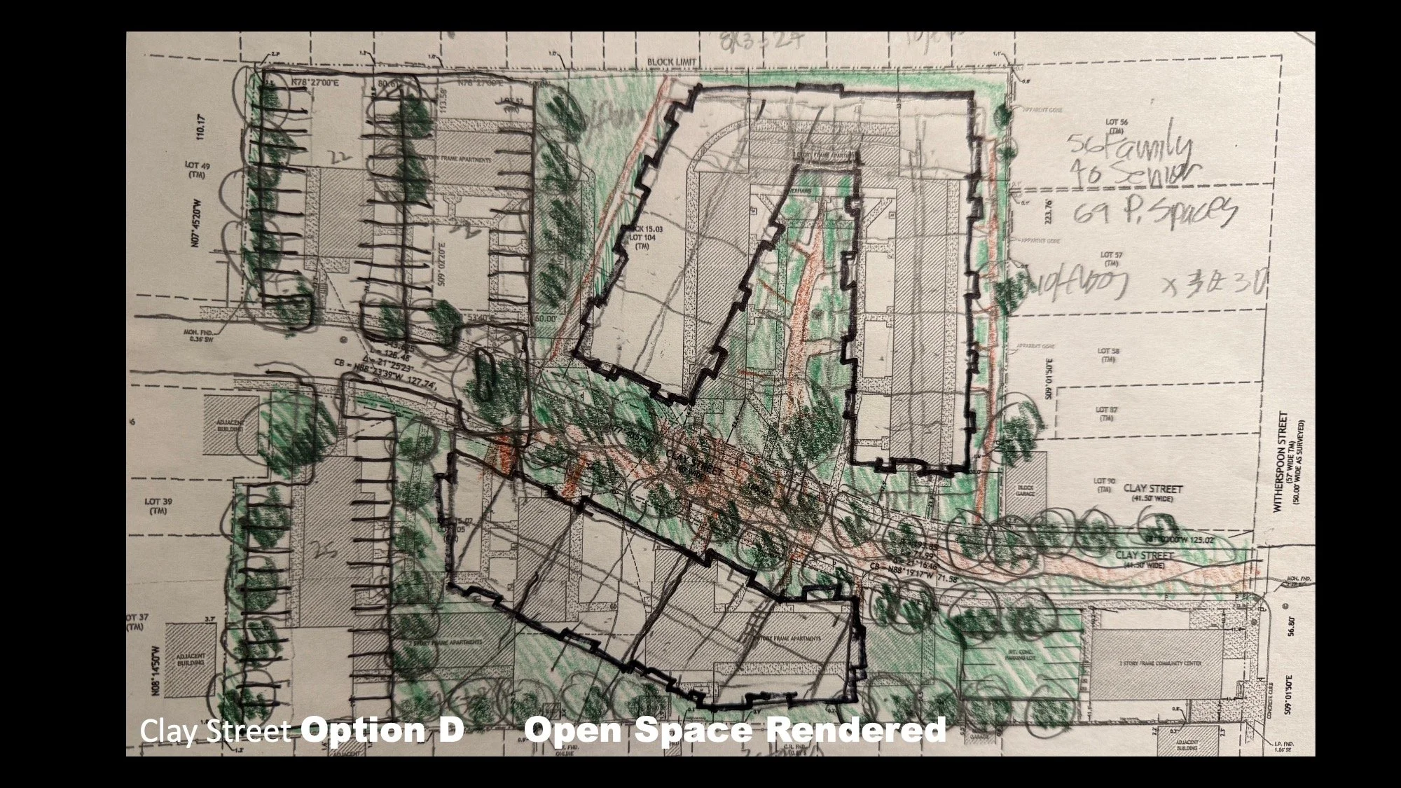 Current Aerial (Google Earth) Courtyard with turf and concrete turtle Limited Parking Sketch (Abandon street for park plaza) Option A Option B 3D Massing Option B Sketch Rendered Massing Option C (Plaza ideas pictures) Option D (Sunshine for all) Option D Sketch Option D Massing Option D 3D Massing